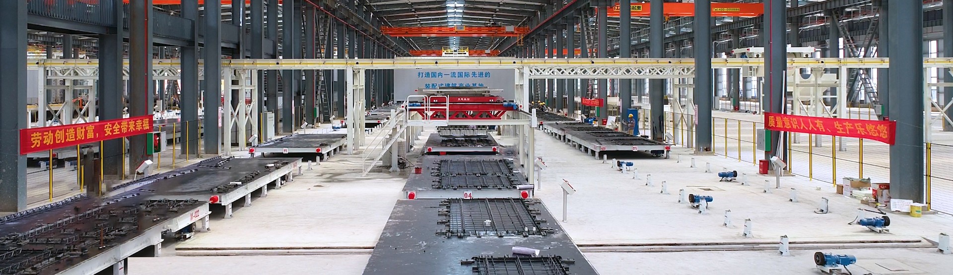 PC構件裝備主要分為PC環(huán)形綜合生產線 ,PC環(huán)形疊合板生產線 ,PC固定模臺生產線 ,PC中央擺渡車生產線 ,雙皮墻自動化生產線 ,PC固定模臺柔性生產線等設備